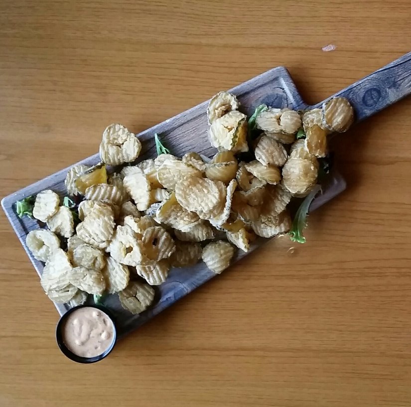 So, I actually started with the fried pickels. You know how sometimes you order fried pickles and they’re all soggy and nasty? Well, these were actually crispy! The whole entire wooden cutting board was served crispy and hot! And they were served with 77 sauce. To my surprise it is a very bold mustard-based sauce, super tangy. It is a great pairing with the pickles and tickles the taste buds!
